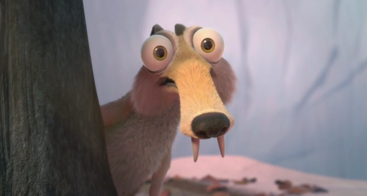 Скратти оборачивается и видит, что Скрат сбежал! Рассерженная саблезубая белка обнаруживает Скрата, обнимающего жёлудь!