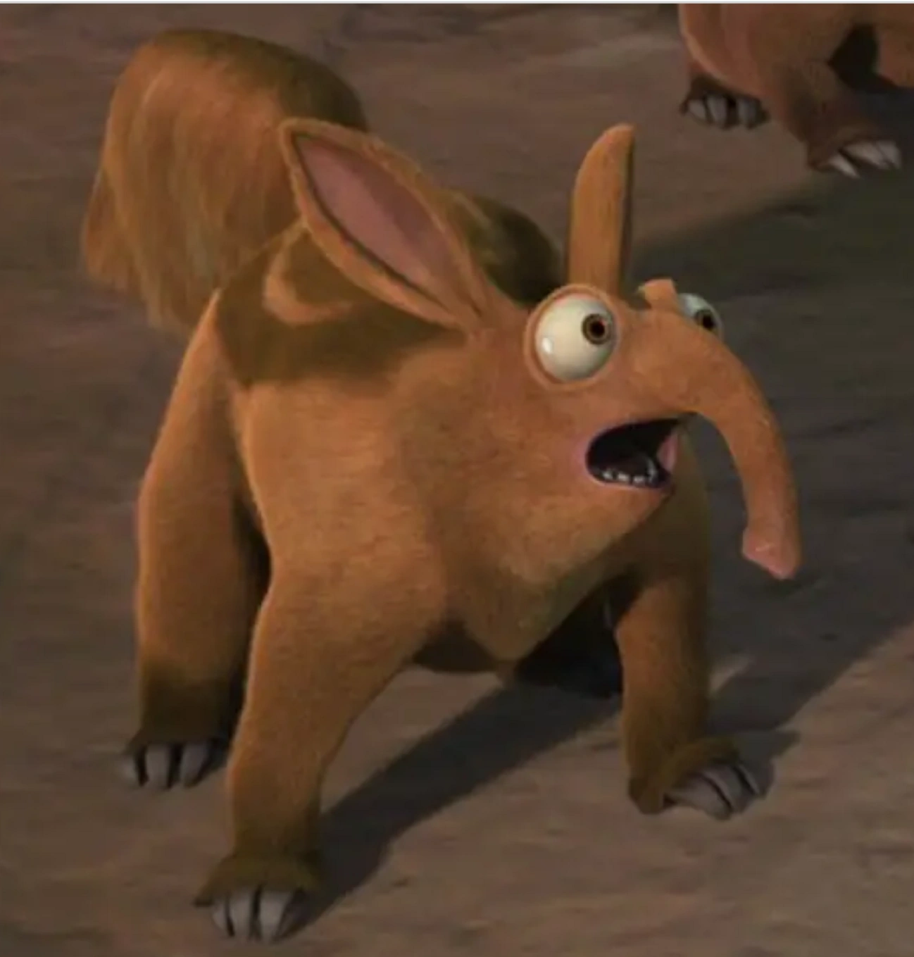 While playing, Andrew and his friend ran into Diego and Shira, two saber-toothed tigers, and were scared by the berry juice dripping down their chins that looked like blood. This left Diego and Shira confused. They later ask Diego and Shira if they helped save the world, and Diego and Shira bond with them, telling them about their story. When Brooke sang My Superstar during the wedding, the young aardvark and start danced with Diego and Shira.