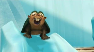 One of the young animals spending time at Sid's camp, Billy played in the naturally-formed ice playground, swimming in the pools and sliding on the ice slides. Billy had no respect for Sid, the ground sloth camp counsellor and helped James, a rough young aardvark, in picking on the sloth, tying him up in a vine trap, in which they hung Sid upside down as a piƱata before burying Sid up to his head in the dirt.
