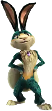 Teddy is a rabbit who is a resident of Geotopia. Teddy is a hunky, fitness-obsessed bunny and a very youthful 326 years old who woos and appears to take a liking to a ground sloth, named Gladys, by massaging and then bench-pressing her.